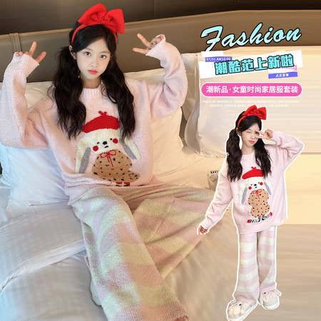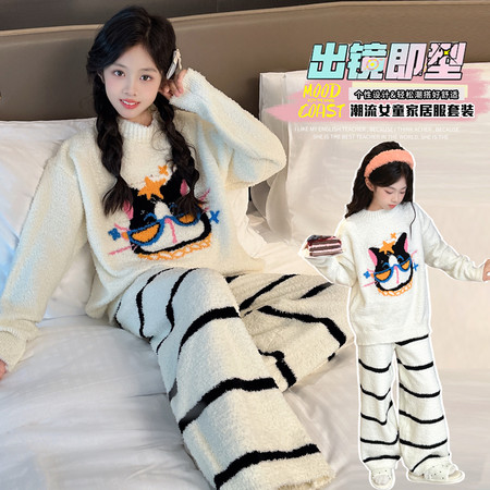 8*9收藏“8813女童加绒打底加绒豹纹裤套装”