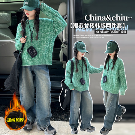 1*5下载视频“8815女童毛衣-加绒牛仔裤套装”